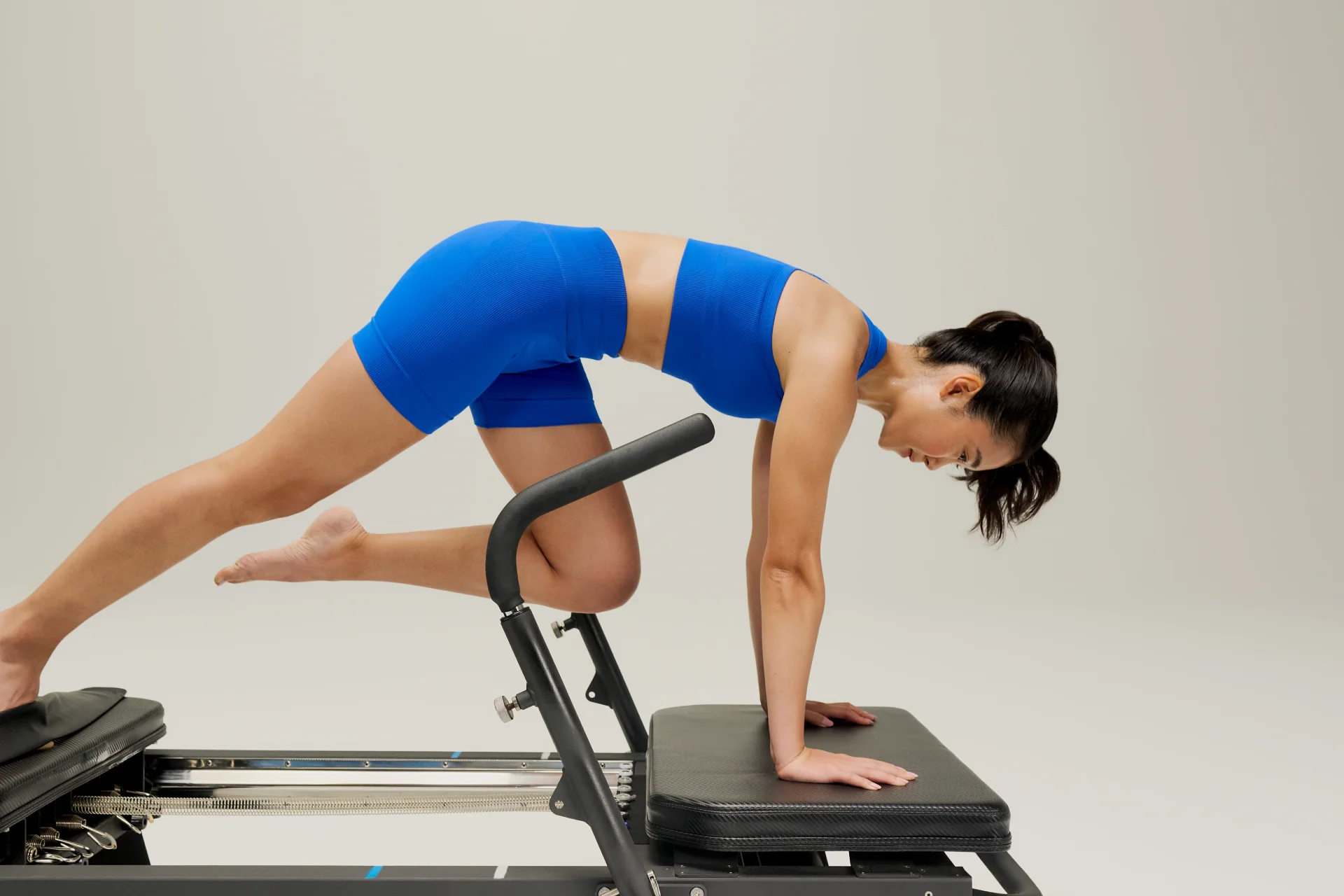 If shoulder-width doesn’t feel great on your wrists, you can move out to a wider stance for more support. Some clients even opt to grab the sides of their carriage/platform, which is fine too.
